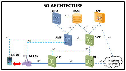Abaixo a arquitetura 5G usando a infraestrutura SBA: