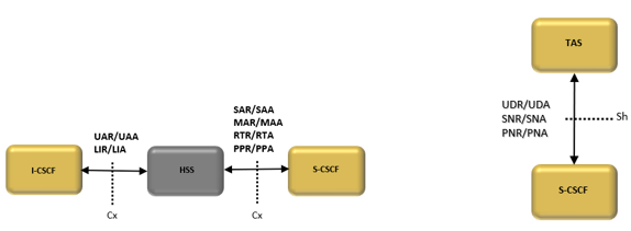 O HSS faz interface com vários elementos do core IMS, como: I-CSCF, S-CSCF, TAS, E-CSCF, AAA.