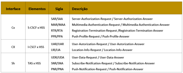 • O S-CSCF interage com o HSS para obter os dados do cliente e faz a troca de informações de autenticação usando mensagens Diameter.
