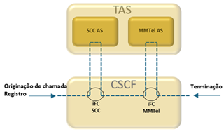 A ilustração abaixo mostra a sequência de trigger ao TAS (SCC AS e MMTel) de acordo com o cenário (registro, chamada origina ou terminada). A ordem dos triggers é definida de acordo com a prioridade dos iFC que estão dentro service profile configurado no HSS e associado ao perfil do assinante. No item que falarei sobre HSS mostrarei detalhes.
