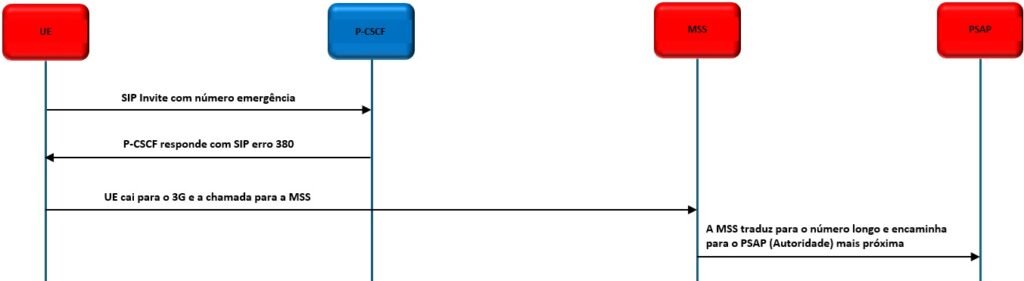 1 – Via CS-Fallback: Essa é opção é quando a operadora não é capaz de admistrar a chamada de emergência diretamente via rede IMS.