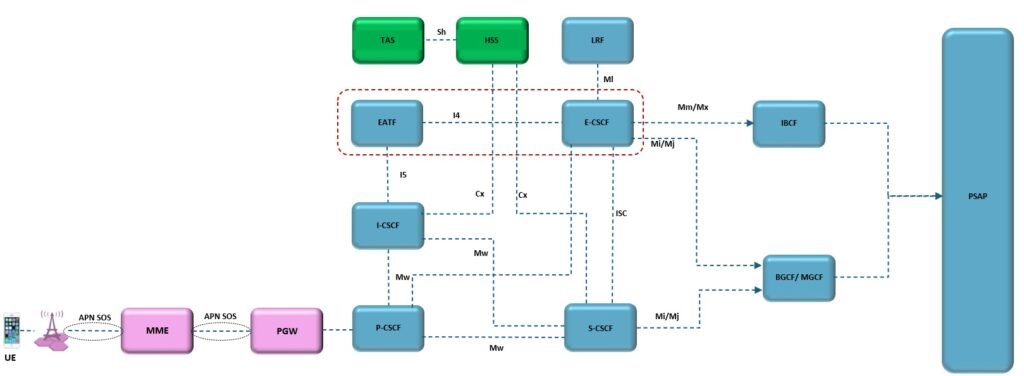 EATF – Fornece procedimentos para ancoragem de sessão de emergência IMS caso ocorra SRVCC durante a chamada. É função da rede local IMS, ou seja, quando o assinante está em roaming será função da rede visitada.